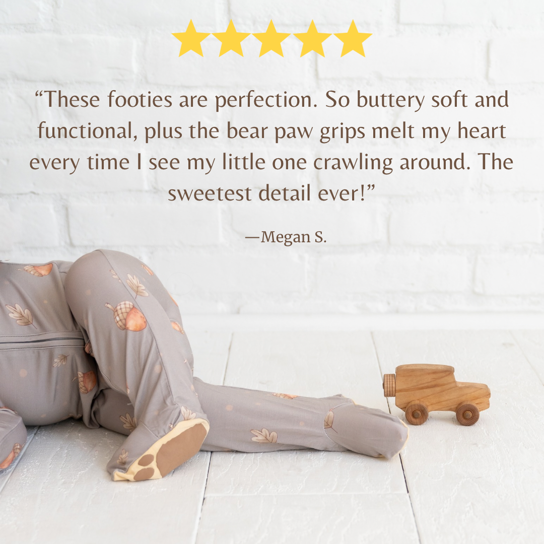 Crafted from buttery soft material with two-way zippers for effortless changes, irritation-free tagless interiors, and our signature bear paw grips to support those first steps, every stitch is designed to make life easier for you and cozier for your little one.